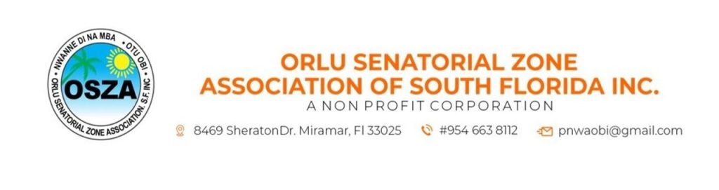 OSZA of South Florida are indigenes of Orlu Senatorial Zone in Imo State of Nigeria, living in South Florida. We are American citizens with deep loyalties for our dual nationalities, America, and Nigeria. We are very patriotic, peace-loving, and very upwardly progressive individuals, with deep seated respect for humanity. We are of the Igbo tribal nationality but with a very cosmopolitan view of the world. Our Core Objective is to promote African Culture and heritage. We are on a path of continuous, never-ending value contributions to South Florida and our African origins.